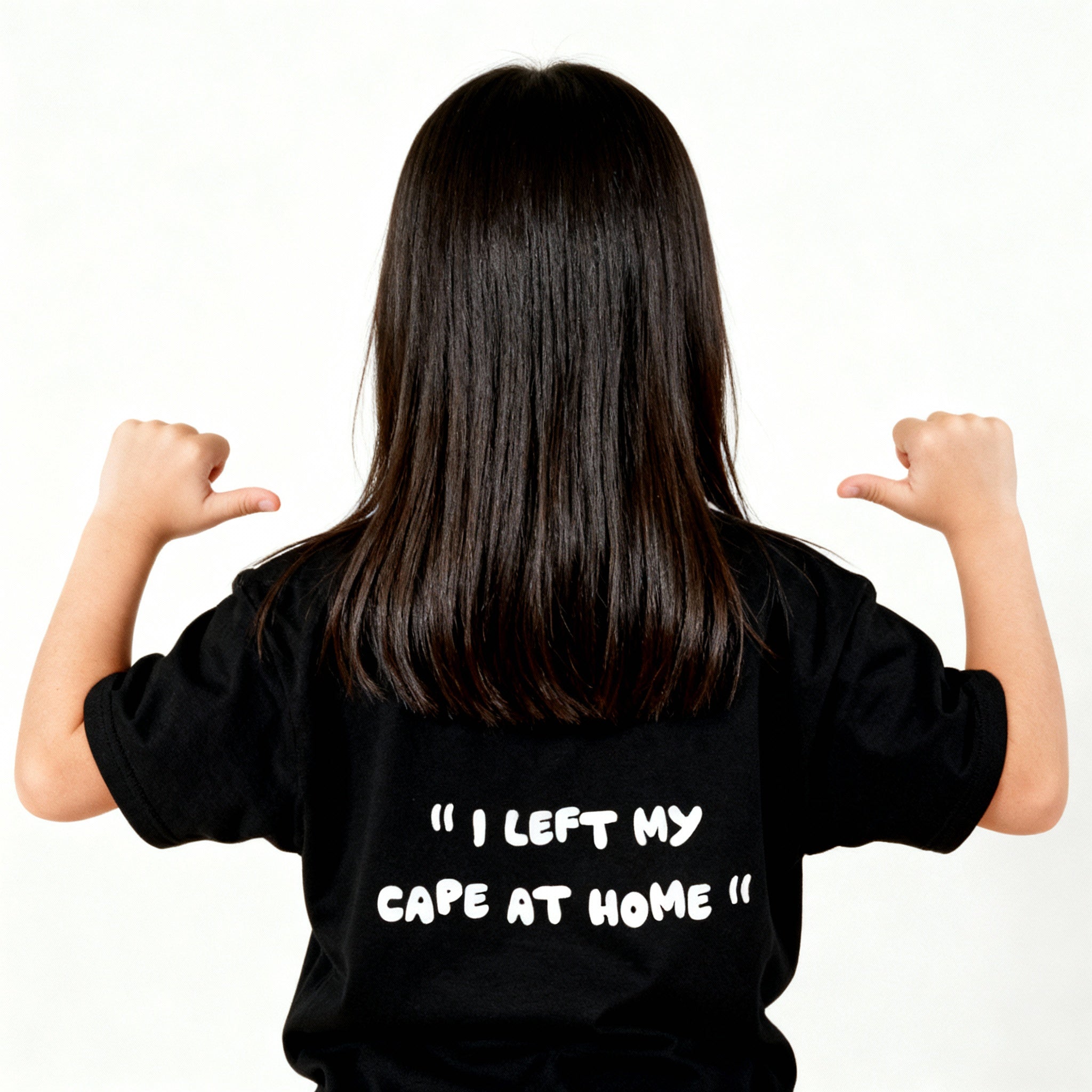 De " I left my cape at home " T-shirt is een ode aan alle kids die elke dag hun eigen verhaal schrijven.