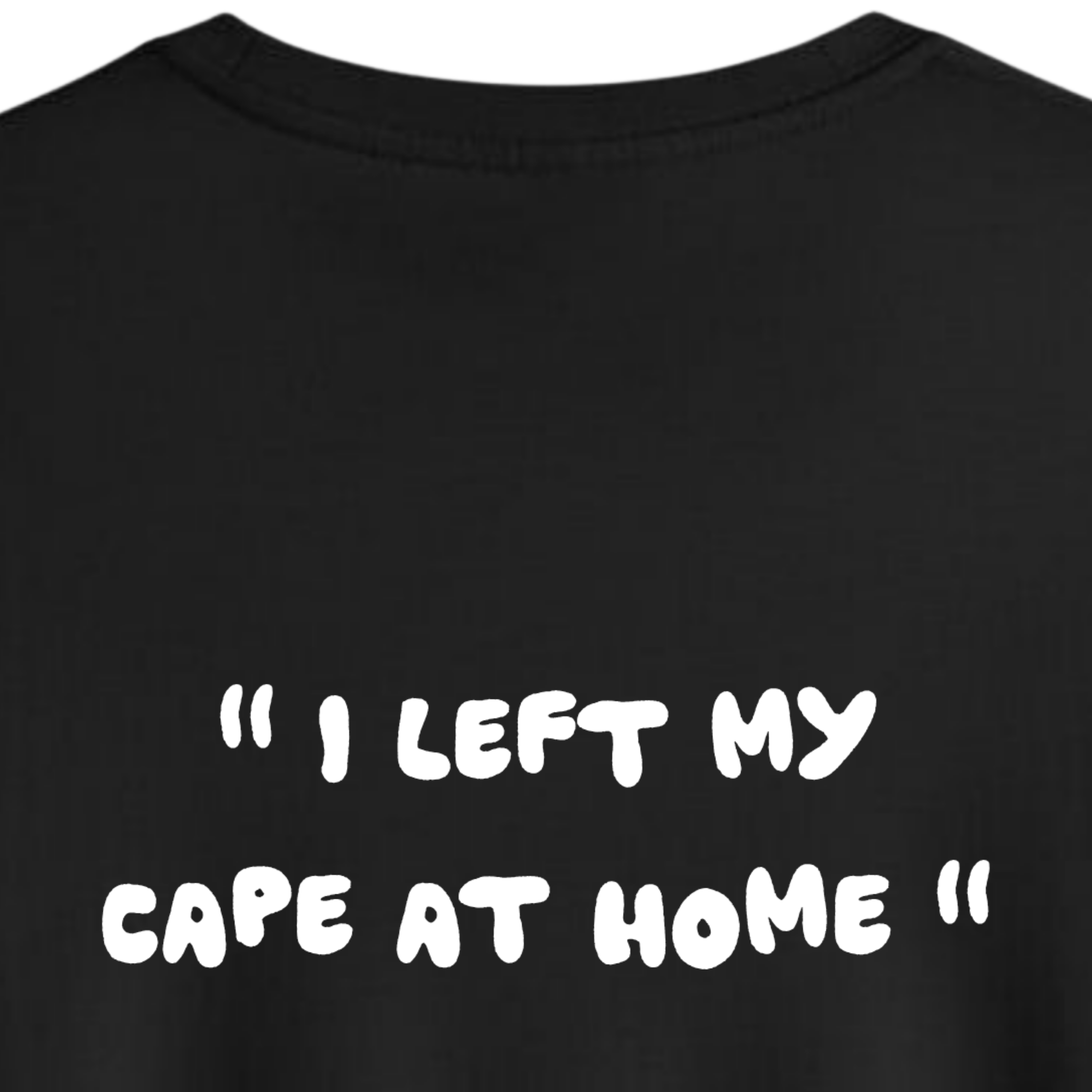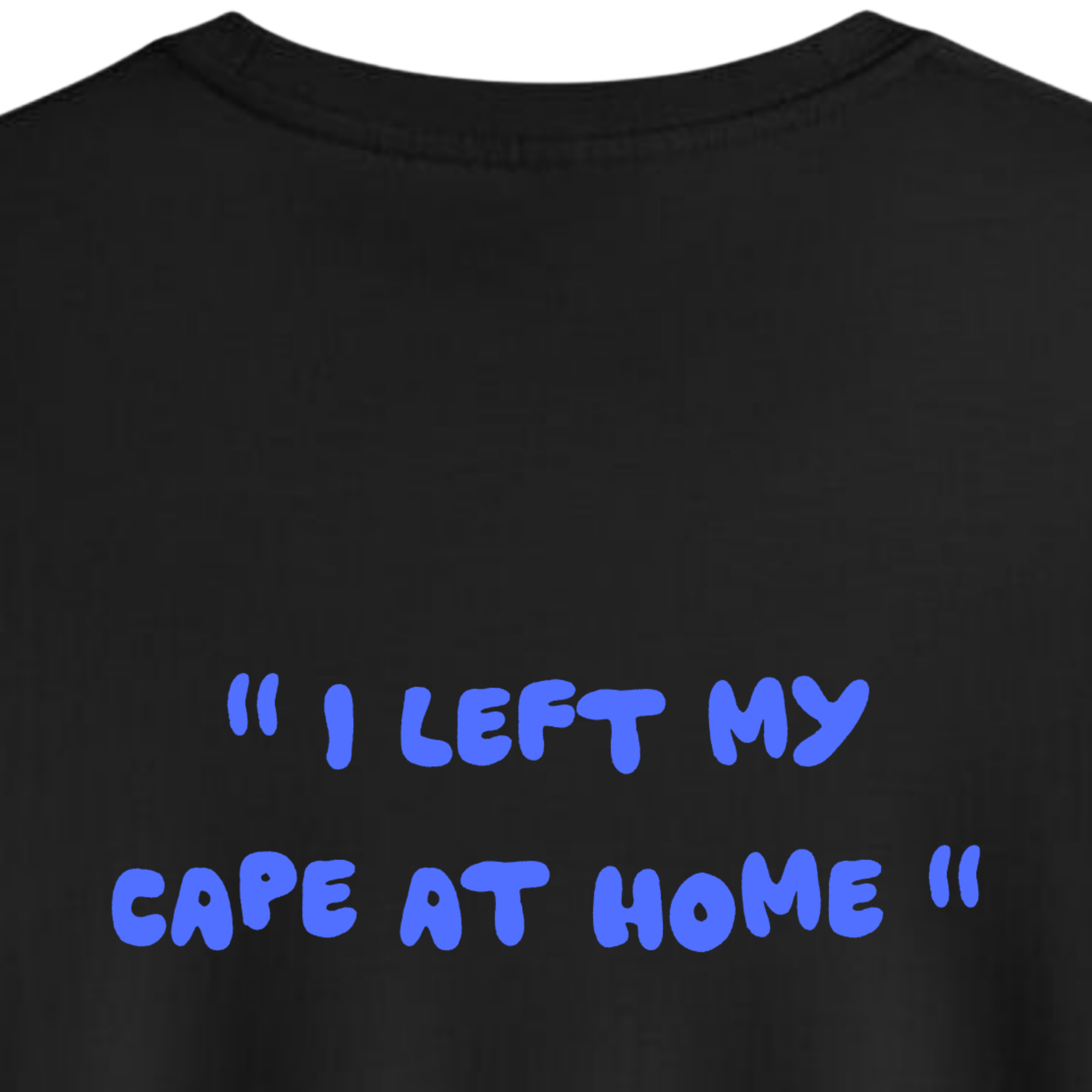 • Tekst: “I left my cape at home” in 3D Puff inkt!